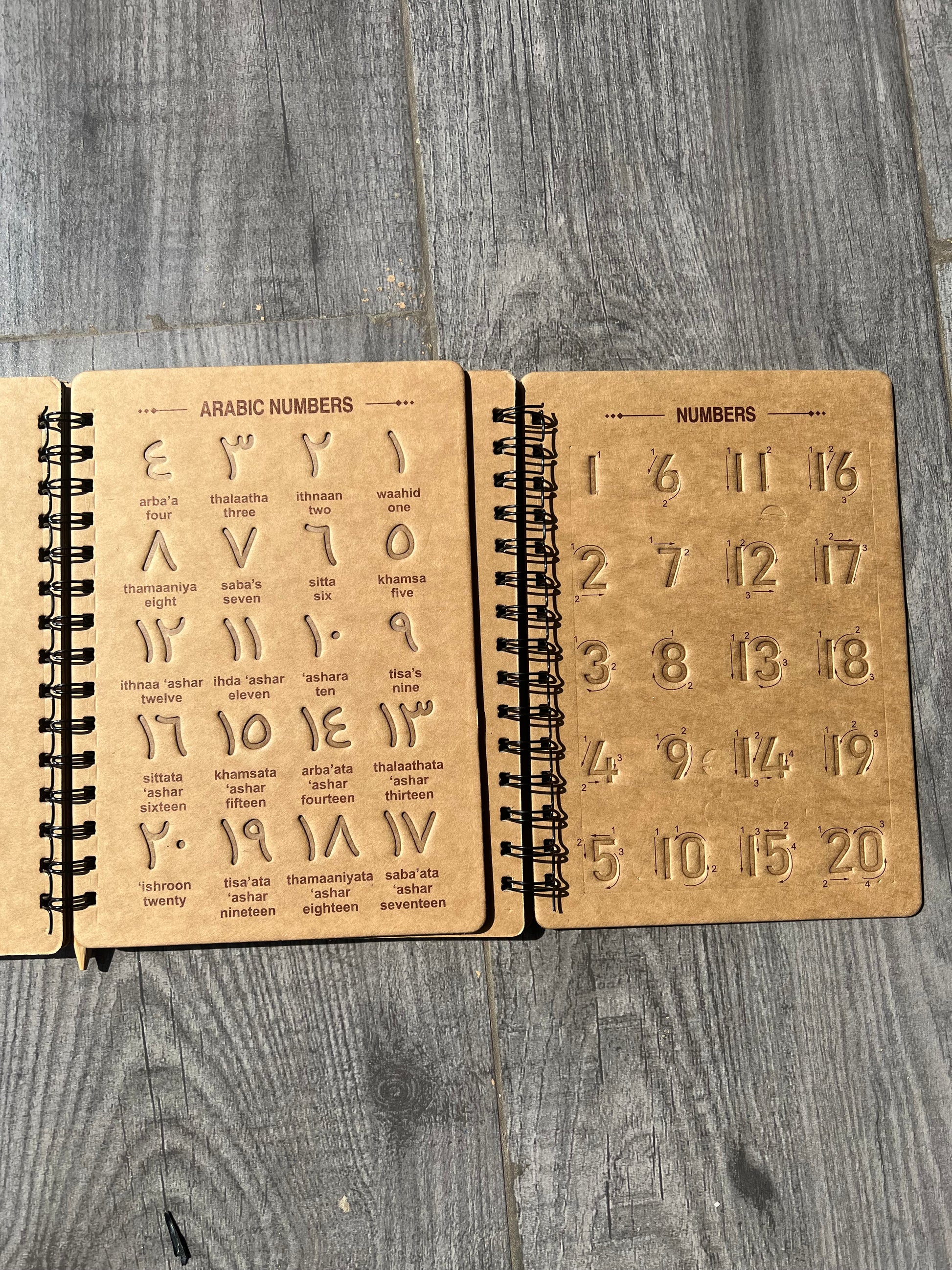 - Includes Arabic numbers (1–20) with pronunciations